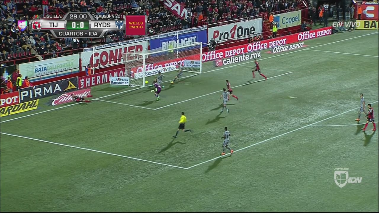 El ‘Quick’ Mendoza se quitó a Hugo González pero abrió demasiado el balón, remató sin ángulo y el contención del Monterrey evitó el 1-0 en el Caliente.