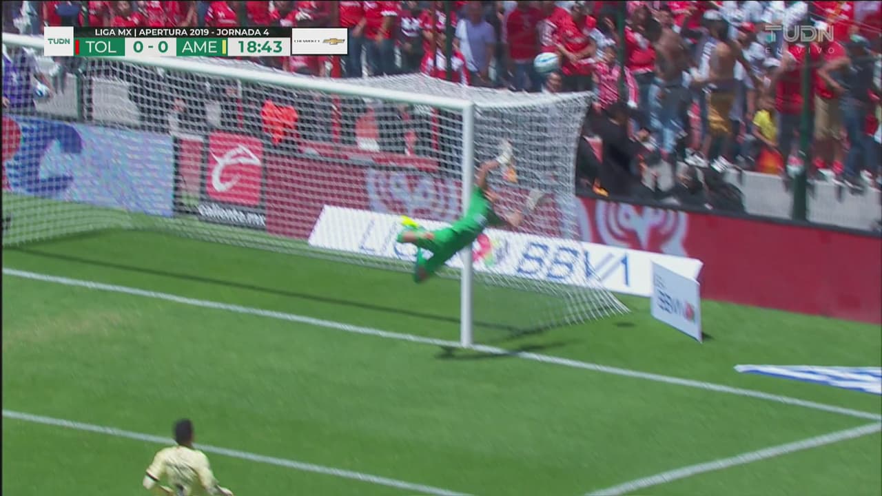 El arquero americanista vuela para impedir la anotación de Toluca en disparo casi al ángulo.