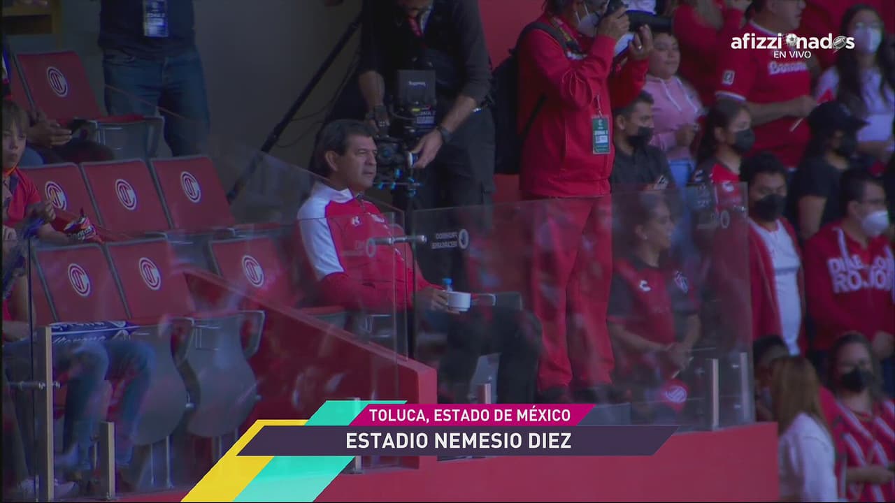 El exjugador paraguayo apareció en un palco del recinto de la capital mexiquense, vestido con sudadera de los Diablos Rojos.
