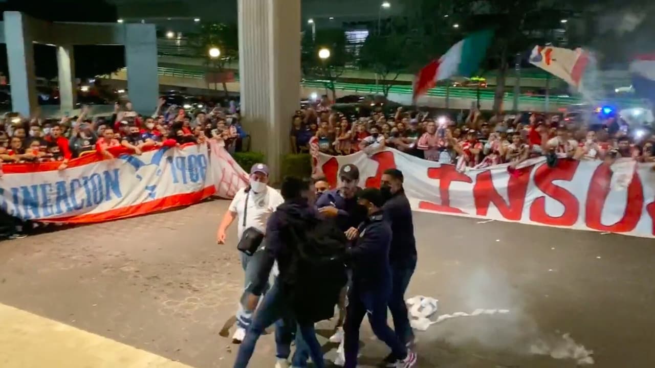 Cuando algunos de los elementos del Rebaño salieron del hotel para hablar con la barra del equipo, integrantes de ésta lanzaron objetos sobre de ellos, lo que generó que de inmediato algunos volvieran a dirigirse al interior del hotel.