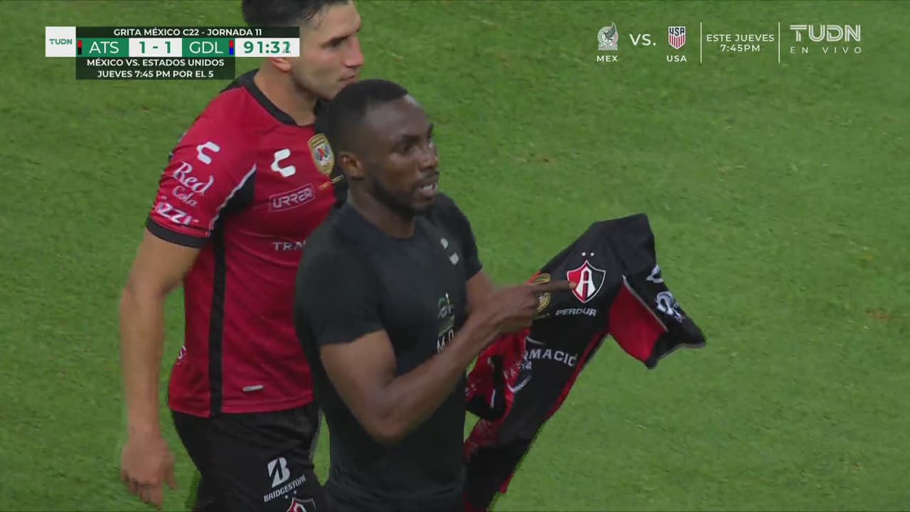 Cuando el colombiano convirtió el gol al 90' el Estadio Jalisco explotó y con ello la euforia de los jugadores rojinegros, no obstante Quiñones primero recibió la tarjeta amarilla por despojarse de su camiseta.