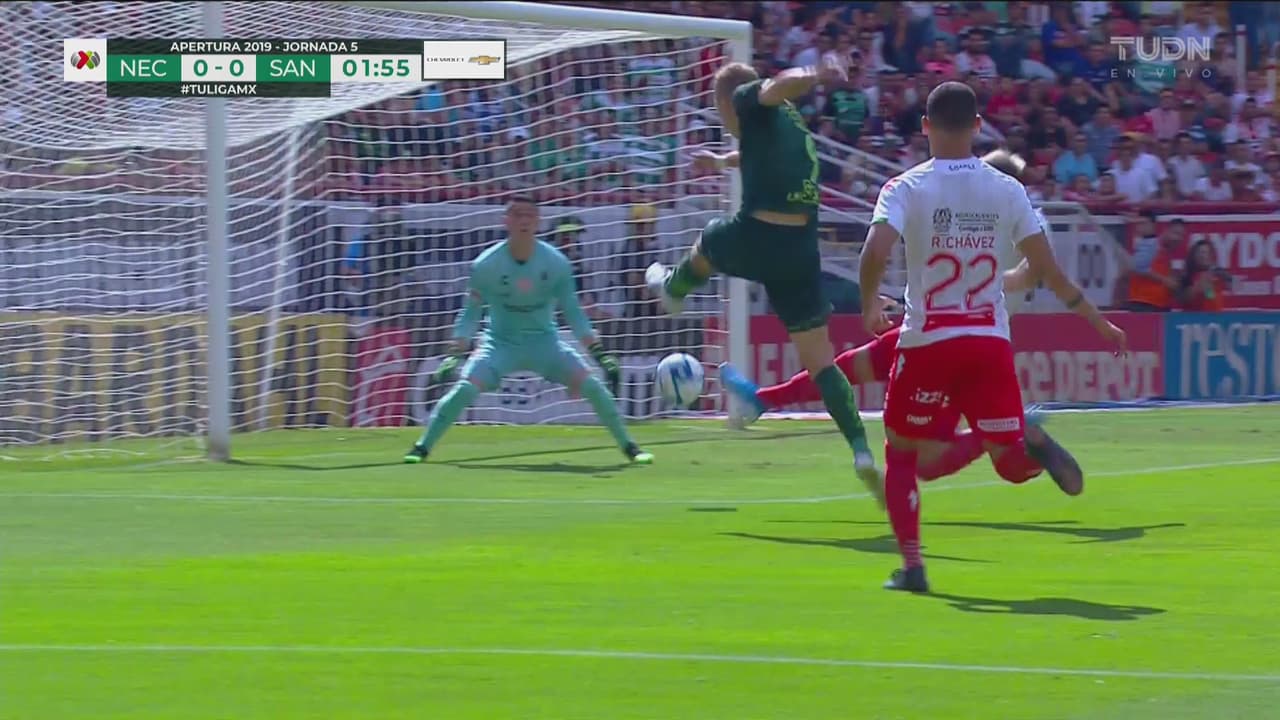 El argentino, a los 2 minutos, remató con potencia pero portero evitó el primero de Santos.