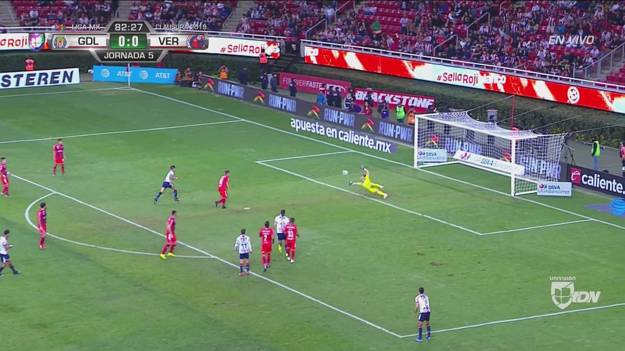 El contención de Chivas sacó un disparo de fuera del área que el portero jarocho rechazó de gran forma. Una más.