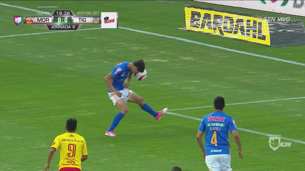 El volante felino midió mal un servicio de trámite y le metió el brazo izquierdo; Delgadillo silbó inmediatamente.