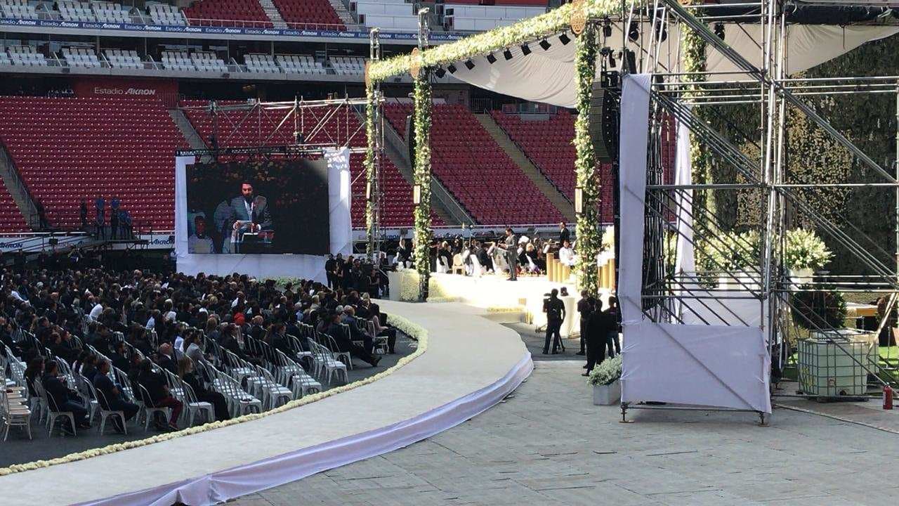 Amaury Vergara le leyó una carta a su padre Jorge Vergara durante la misa del empresario por su fallecimiento, celebrada en el Estadio Akron este domingo.