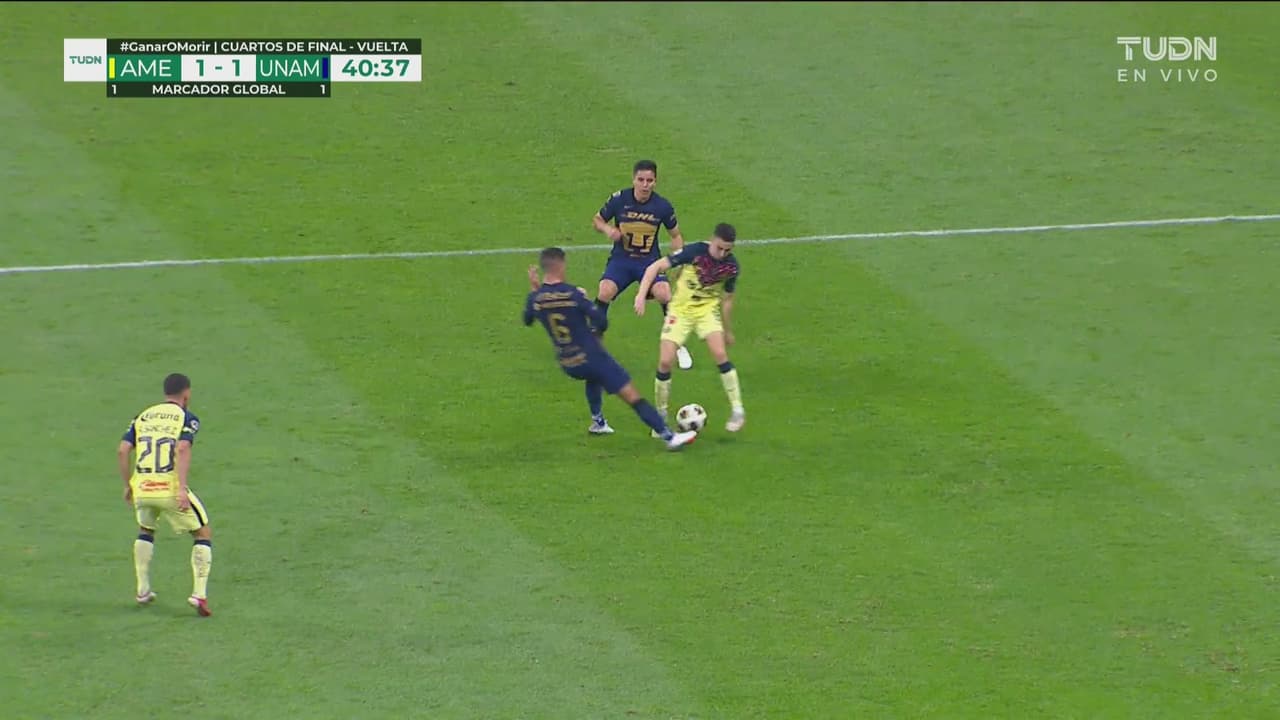 El jugador de América se queda con la pelota después de hacer una ruleta.