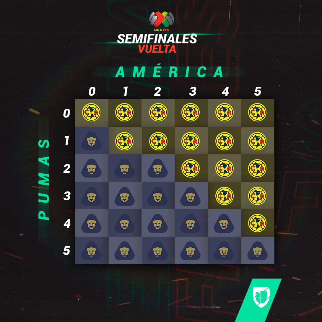 Para el duelo en el Azteca, Pumas necesita ganar o empatar por dos goles o más para instalarse en la final, lo que los obliga a buscar el arco rival desde el principio, pero el arriesgar demasiado podría hacer que dejen demasiados espacios que pueden ser aprovechados por los veloces atacantes del América.