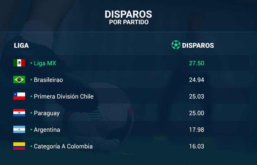 Si consideramos las cifras de la Liga MX en el campeonato mexicano, casi cada tres minutos hay un intento de disparo (a gol o tiros que van desviados, fuera de portería), en cada partido ocurren al menos 10 oportunidades más de lo que sucede en Argentina y Colombia.