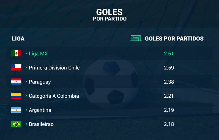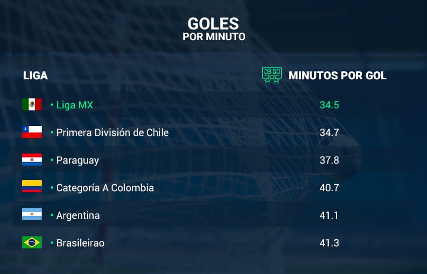 En promedio, en la Liga MX se anota un gol cada 34.5 minutos, es la número uno de la región, también es donde más disparos hay por partido y más goles por encuentro. Las tres clasificaciones las lidera el futbol mexicano.