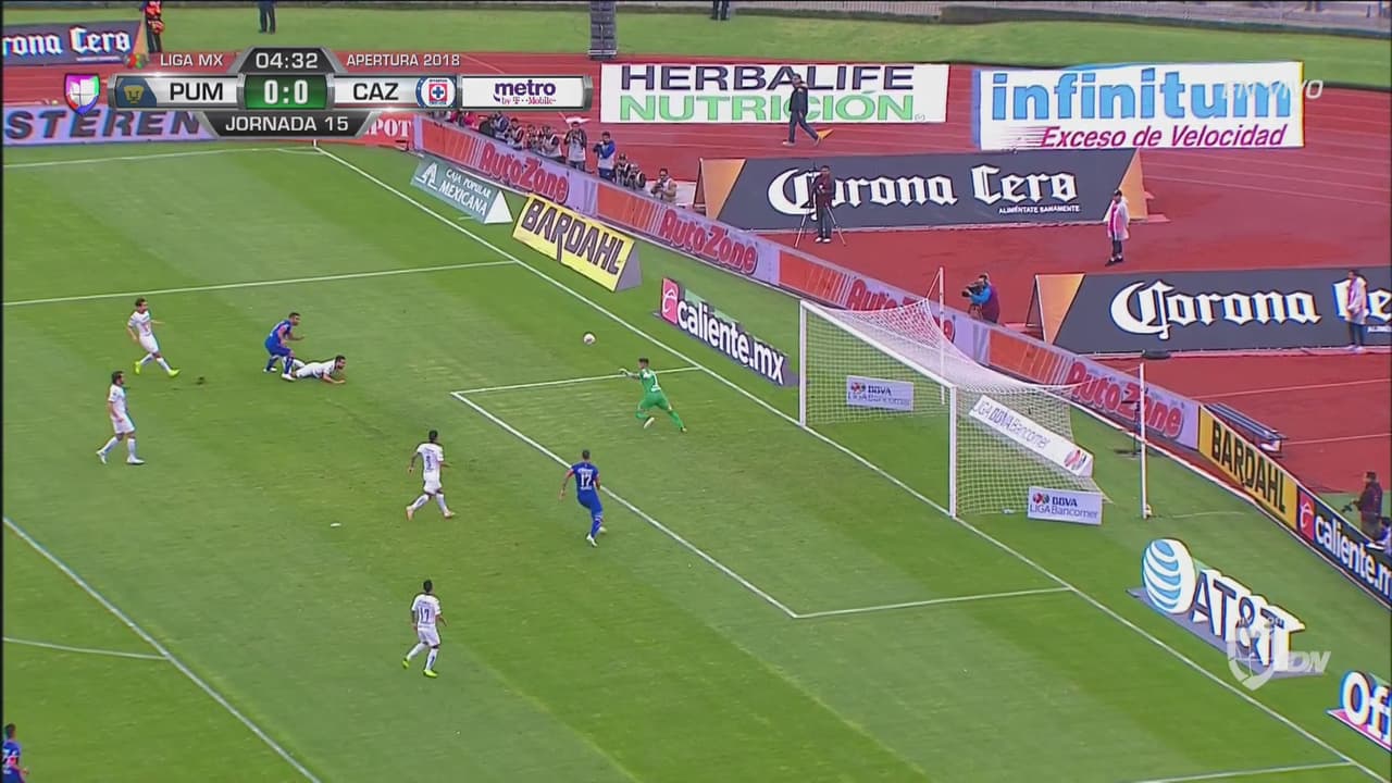 Media vuelta del uruguayo y Cruz Azul ya avisó al arco de Pumas.