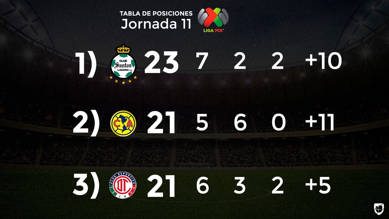 América se quedó con la segunda posición de la general al quedarse en 21 unidades, los mismos que Toluca y Tigres, solamente que las Águilas tienen mejor diferencia de anotaciones.