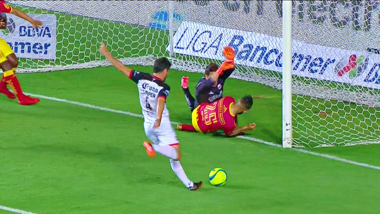 El defensa de Lobos BUAP encabeza la lista porque, faltando un minuto para terminar el partido y con el resultado en contra por un gol, perdió la oportunidad de igualar el juego con este terrible error de definición.