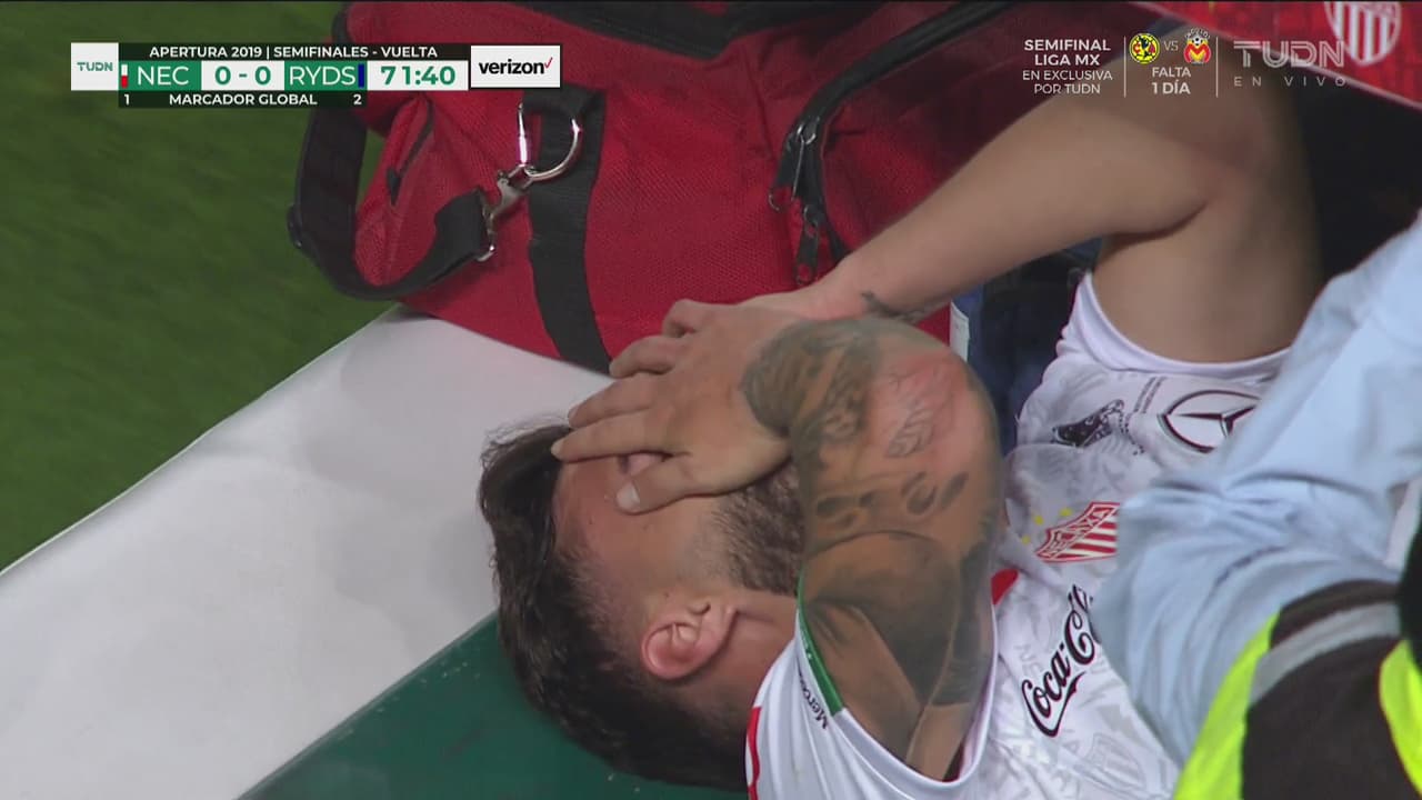 ¡Lágrimas de dolor! Se le atora la pierna a Gallegos y debe salir