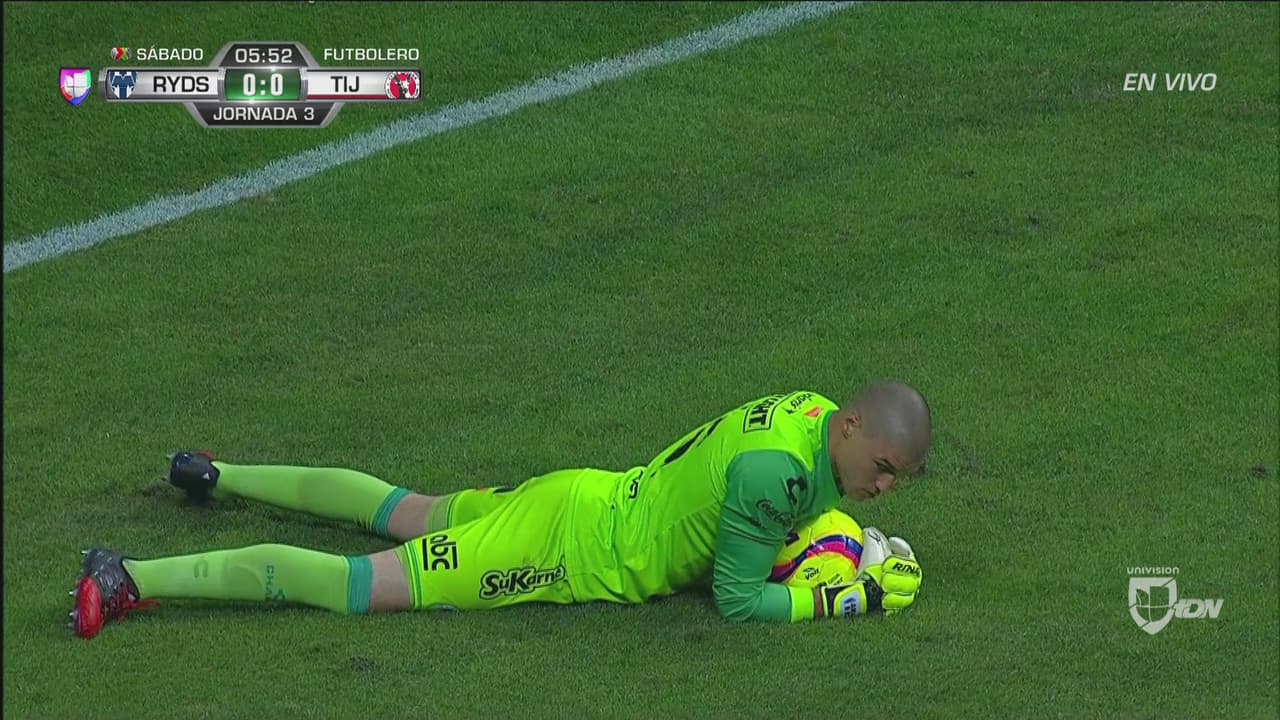 El arquero de Tijuana ya es factor, luego de atajar un peligroso tiro del colombiano de Rayados.