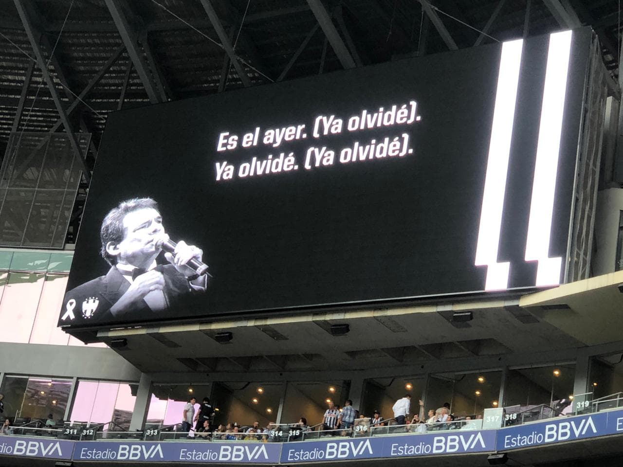 El ‘Príncipe de la Canción’, fallecido este sábado, fue recordado en el estadio de Rayados. 'Lo Pasado, Pasado' fue entonada en el recinto previo al partido, además de que José José recibió un minuto de aplausos.
