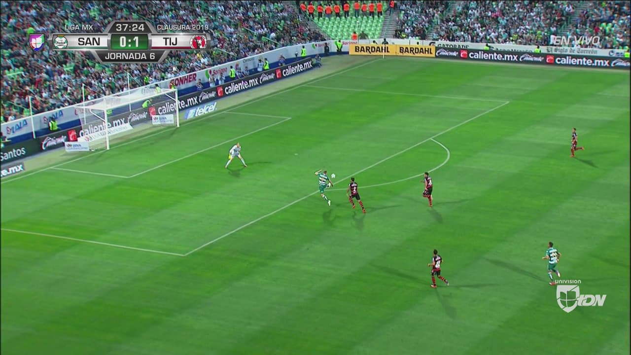 La pelota le terminó quedando un poco atrás al delantero argentino cuando parecía que quedaba mano a mano con Orozco.