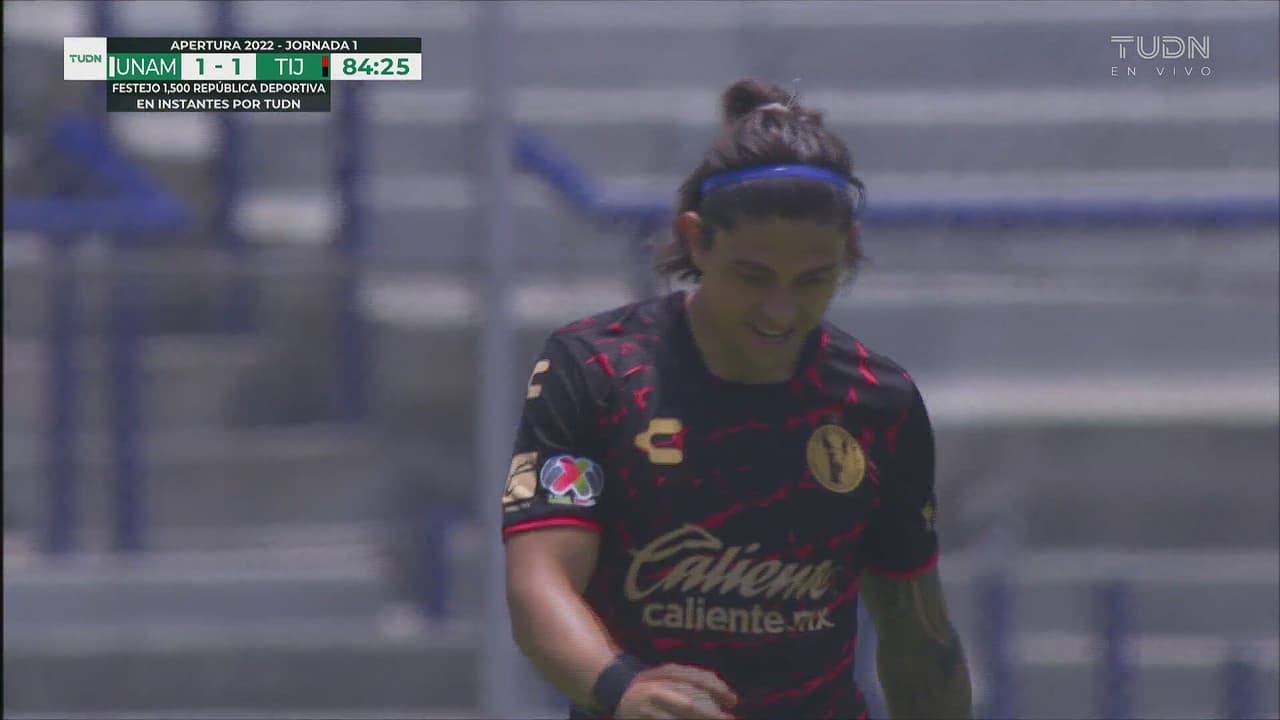 Balón filtrado para el delantero de Xolos, quien eludió al portero de Pumas y marcó, pero estaba adelantado.