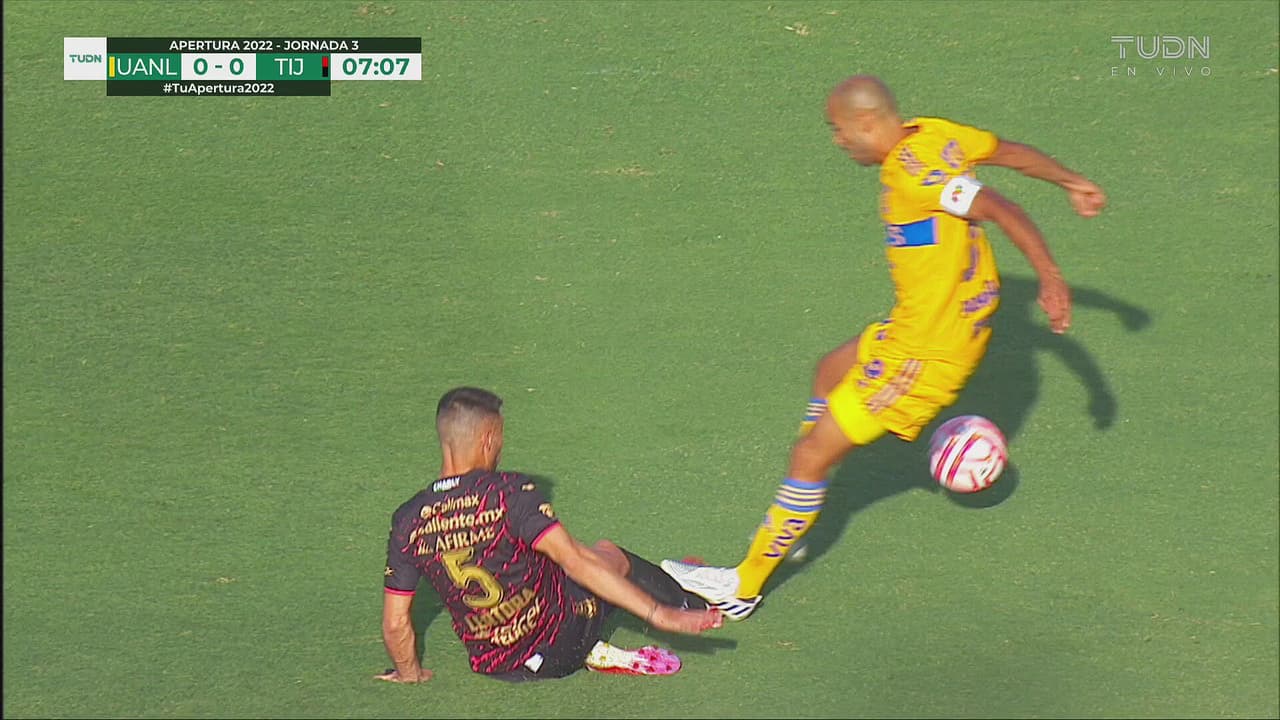 El jugador de Tigres tuvo una fuerte entrada sobre el pie de Federico, pero no se le sancionó al 7’.