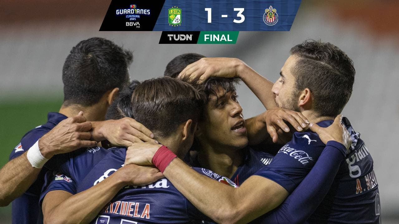 ¡ Ganó Chivas! Lo hizo con autoridad en León, al que le quitaron el invicto en casa después de 736 días sin conocer la derrota. 'Chapo' Sánchez, JJ Macías y Alejandro Mayorga dieron al Guadalajara su primera victoria del Guard1anes Clausura 2021 BBVA MX.