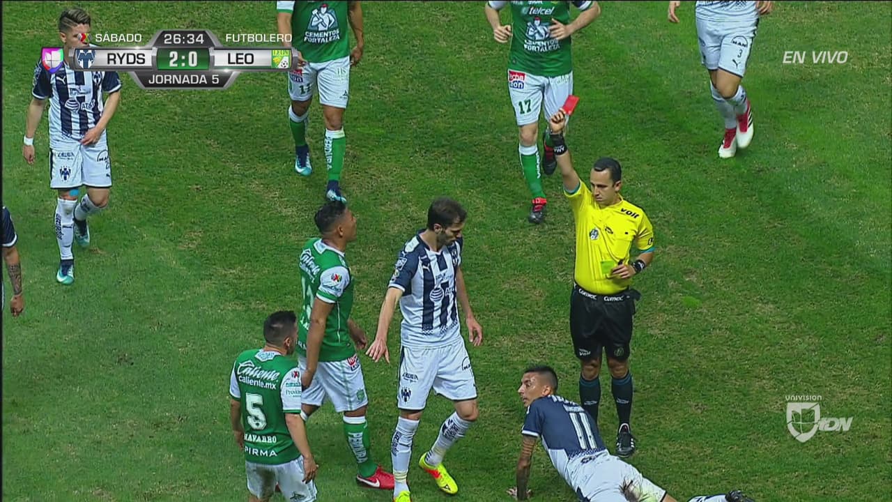 Dicha expulsión se produjo en el minuto 26 del cotejo correspondiente a la jornada 5 del Clausura 2018, entre Monterrey y León.