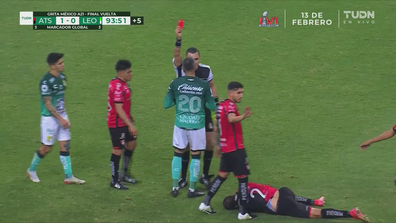 El árbitro Marco Antonio Ortiz Nava decidió expulsar al delantero del León Emanuel Gigliotti por doble amonestación y se desató otra polémica en la final de la Liga BBVA MX, luego de que ya habían estallado los aficionados con el supuesto fuera de lugar en el gol del Atlas.