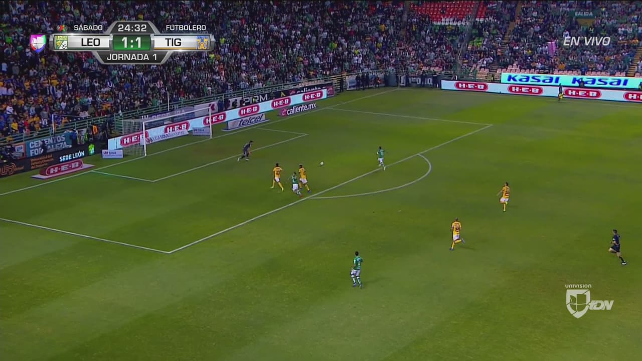 Pero un minuto antes de cumplido el tiempo reglamentado, León sorprendió con un cabezazo de Yairo Moreno que ocasionó polémica abritral, entre el silbante central y el juez de línea, quienes no acordaban si existía fuera de lugar en la jugada.