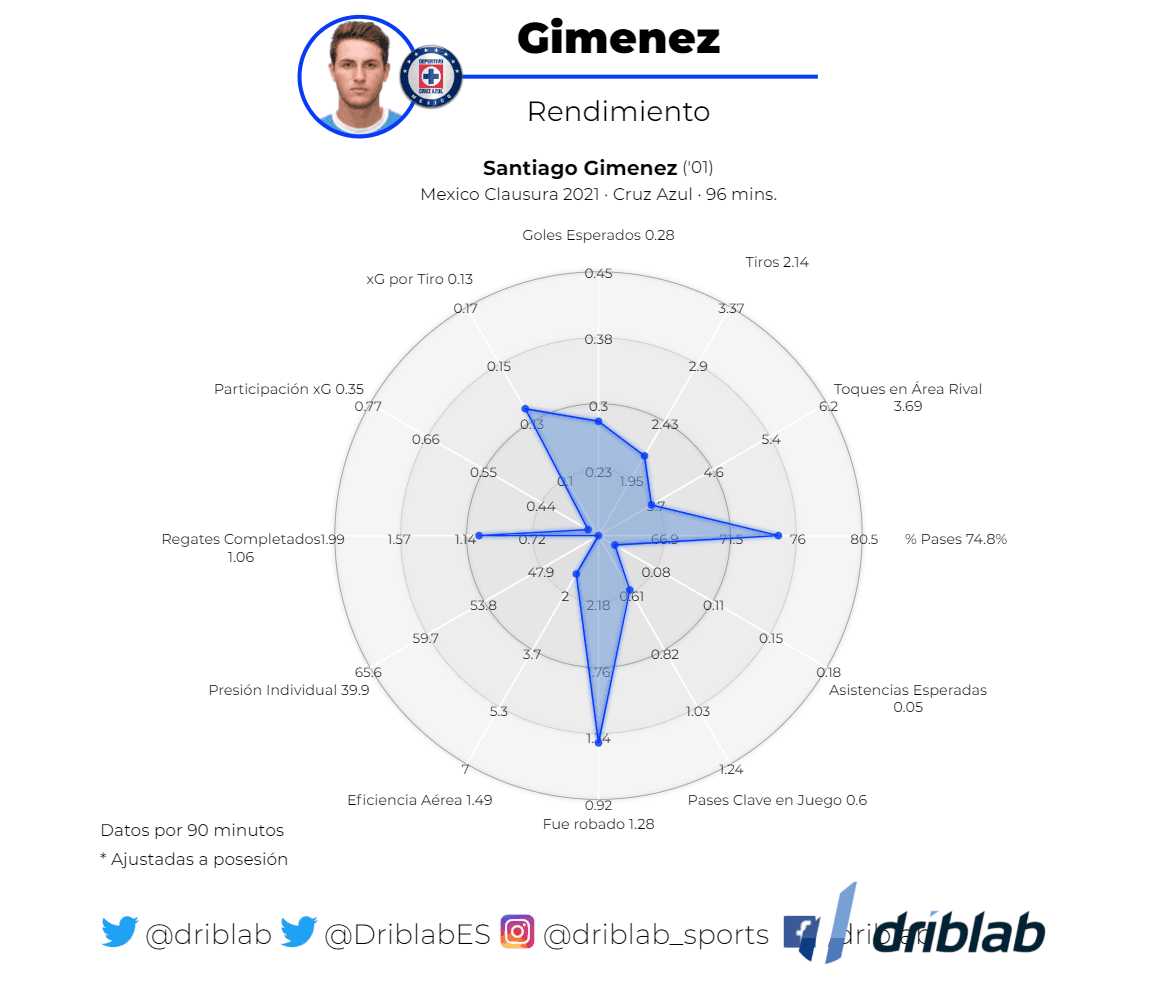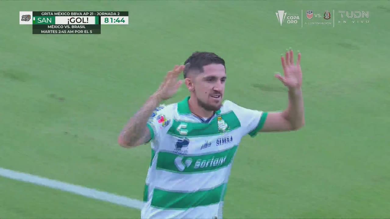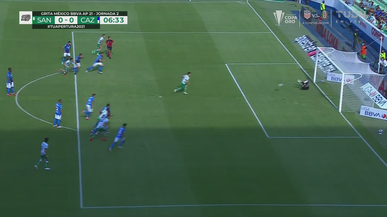 Durante la parte complementaria se presentó una jugada en tres toques que comenzó con el arquero de la Máquina, se prolongó hasta el área albiverde y Santiago Giménez sacó un potente tiro cruzado con el pie izquierdo para romper el cero.