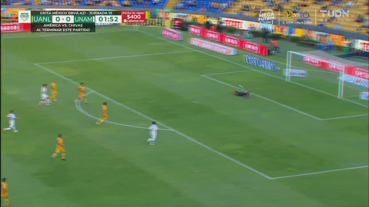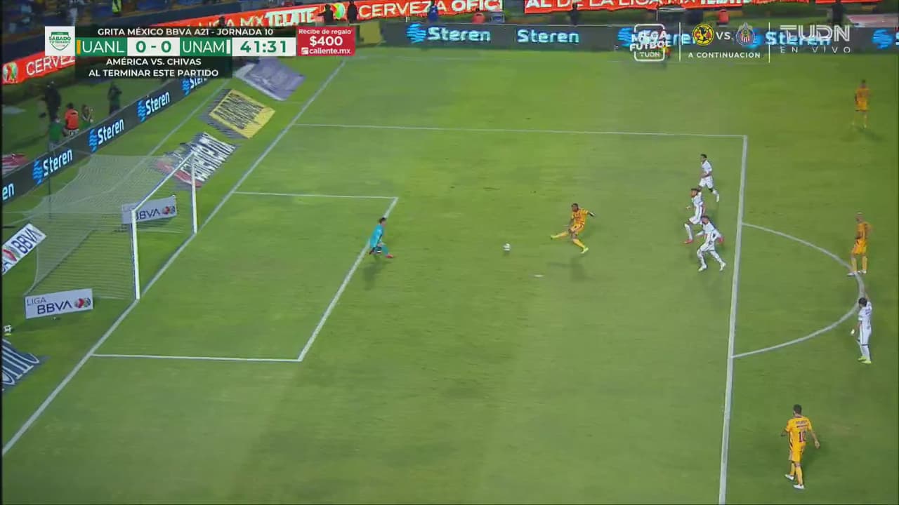 Tigres logró estremecer las redes antes del descanso pero se presentó en una acción donde Luis Quiñones estvo en posición de fuera de lugar.