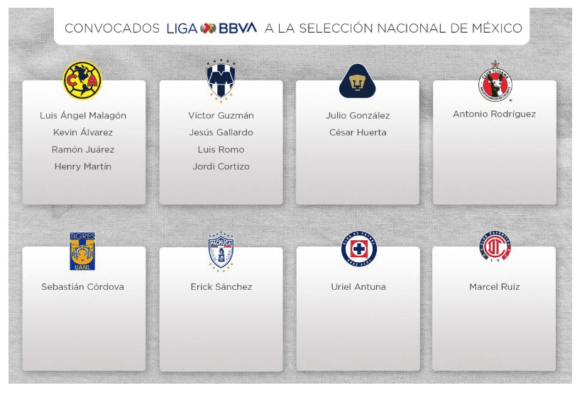 Para los partidos amistosos de la Selección Mexicana, Jaime Lozano convocó a 15 jugadores de la Liga, siendo América y Rayados los que más aportan al Tricolor con cuatro elementos.