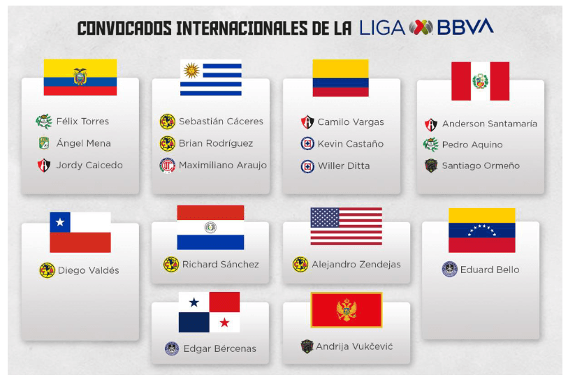El futbol mexicano aporta un total de 33 jugadores a distintas selecciones de Concacaf, Conmebol y UEFA.
