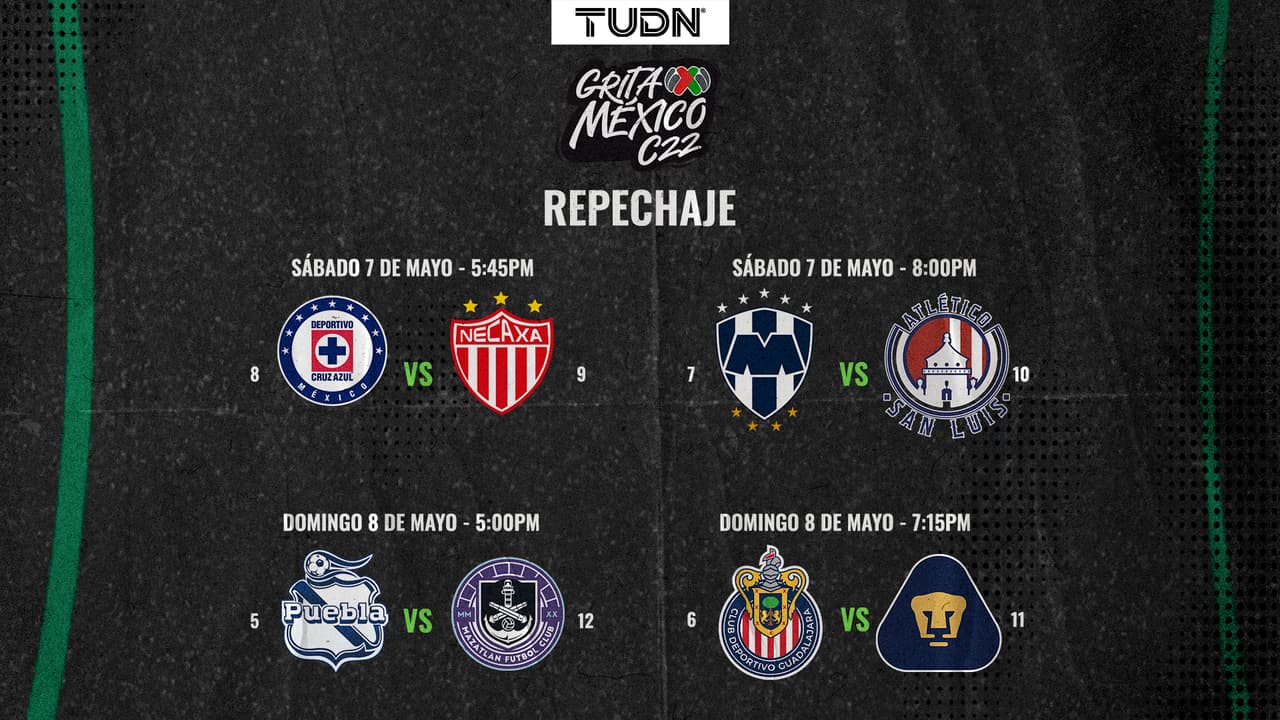 La Liga MX dio a conocer las fechas y los horarios de los partidos de Repechaje en el Torneo Grita México C22 en lo que es el inicio de la Fase Final de este certamen.