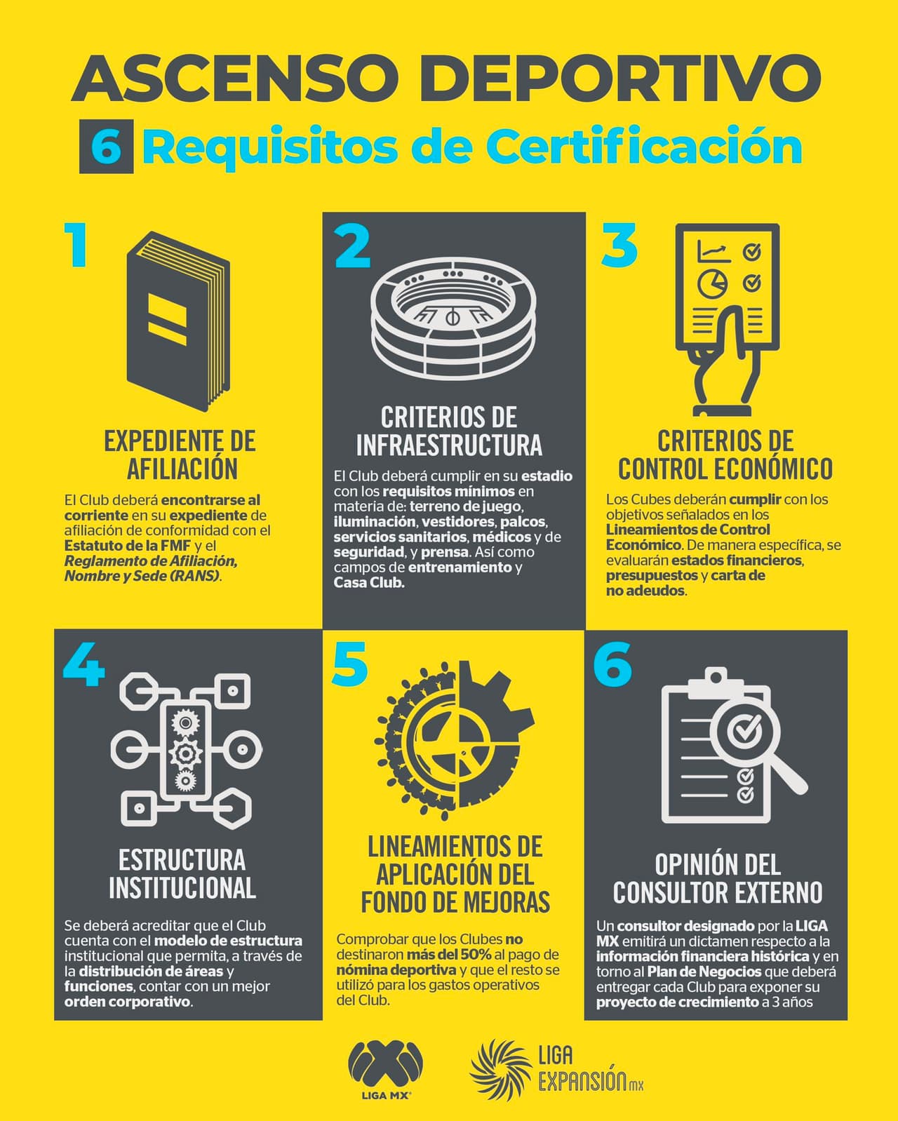 La Liga MX inició el proceso de certificación para el ascenso a Primera División tras notificarle a los 17 equipos de la Liga Expansión MX los requisitos para participar en la convocatoria que permitirá el regreso del sistema de ascenso deportivo en el Apertura 2023.