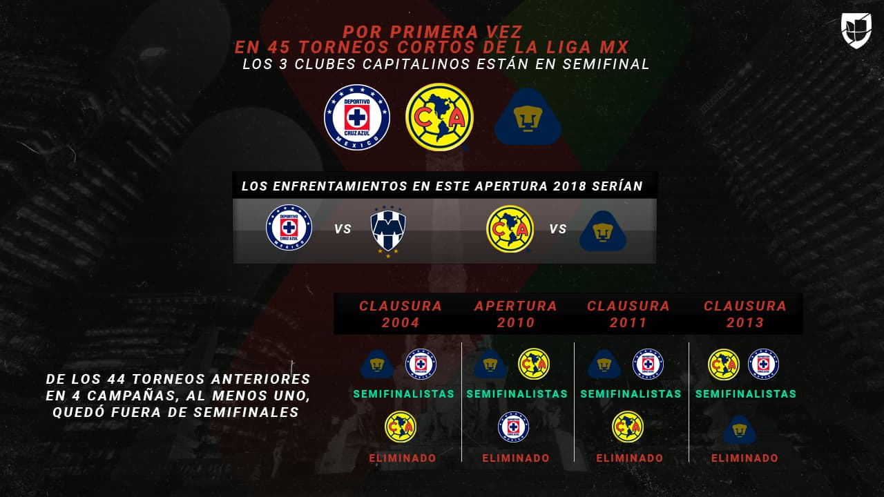 De este modo, la capital del país ya tiene asegurado, por lo menos, a un equipo de la Ciudad de México y saldrá del juego entre azulcremas y auriazules. Además, en caso de que los celestes se impongan ante Rayados, la Final sería totalmente decidida en la capital, esto ocurriría por segunda ocasión en la historia de torneos cortos, tras lo ocurrido en el Clausura 2013 entre América y Cruz Azul.