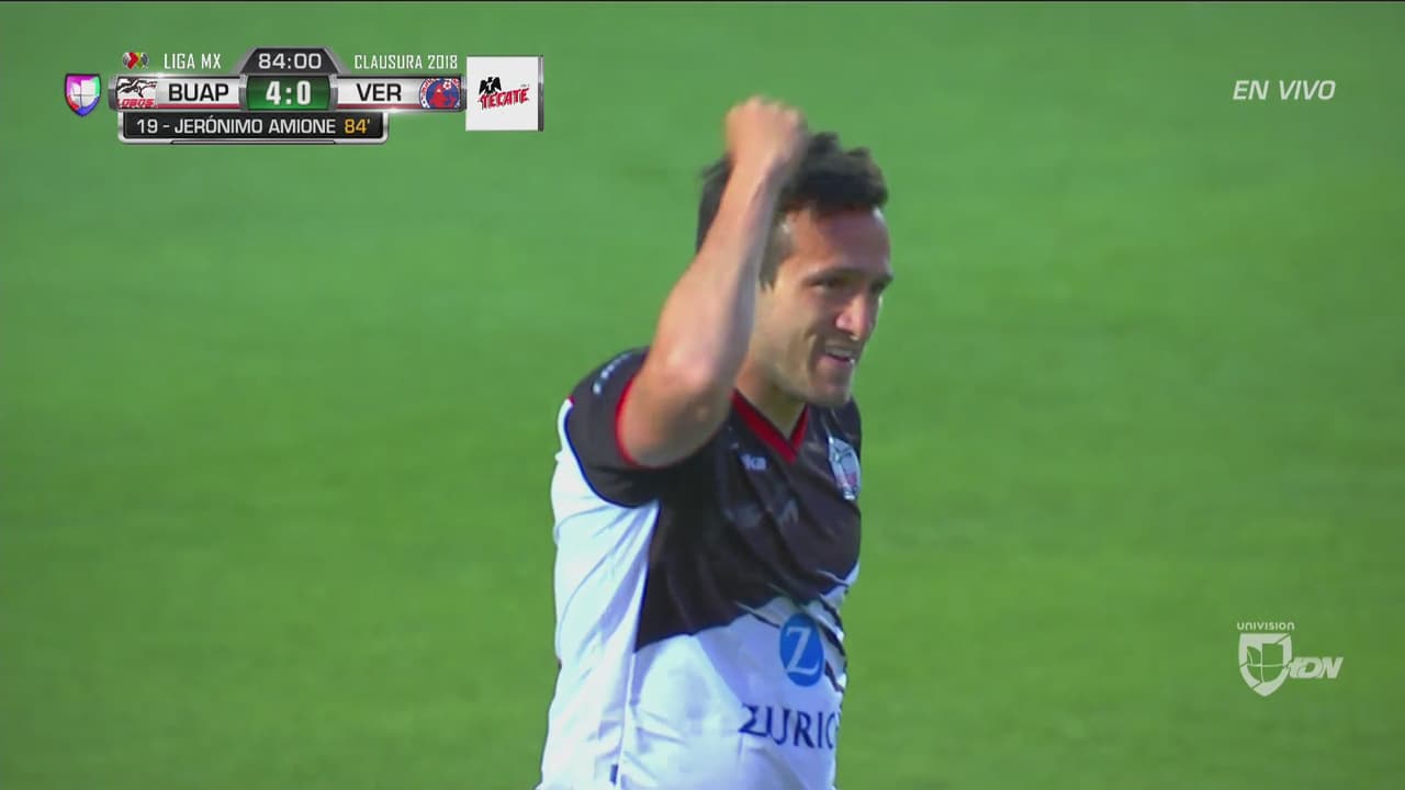 De cabeza, Amione puso el 4-0 sobre Veracruz.