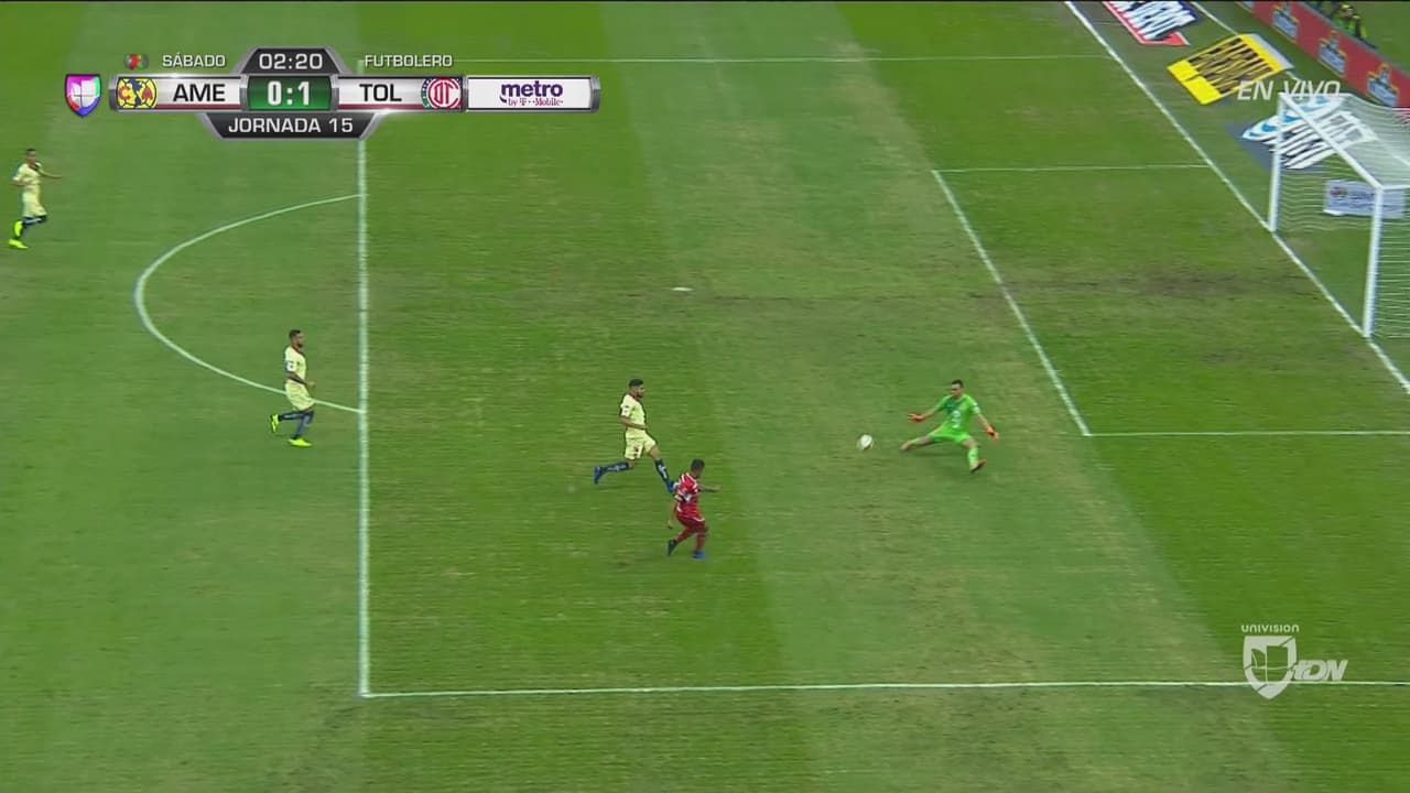 Gran jugada colectiva del Toluca, Alexis Vega recibió y definió de gran forma para vencer a Marchesín. Los Diablos festejan en el Azteca.