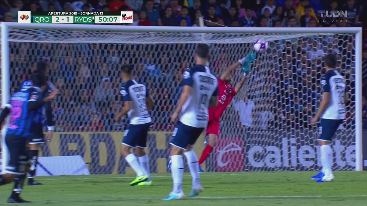 El lateral izquierdo de Querétaro sacó el potente remate desde fuera del área que detuvo el portero de Monterrey.