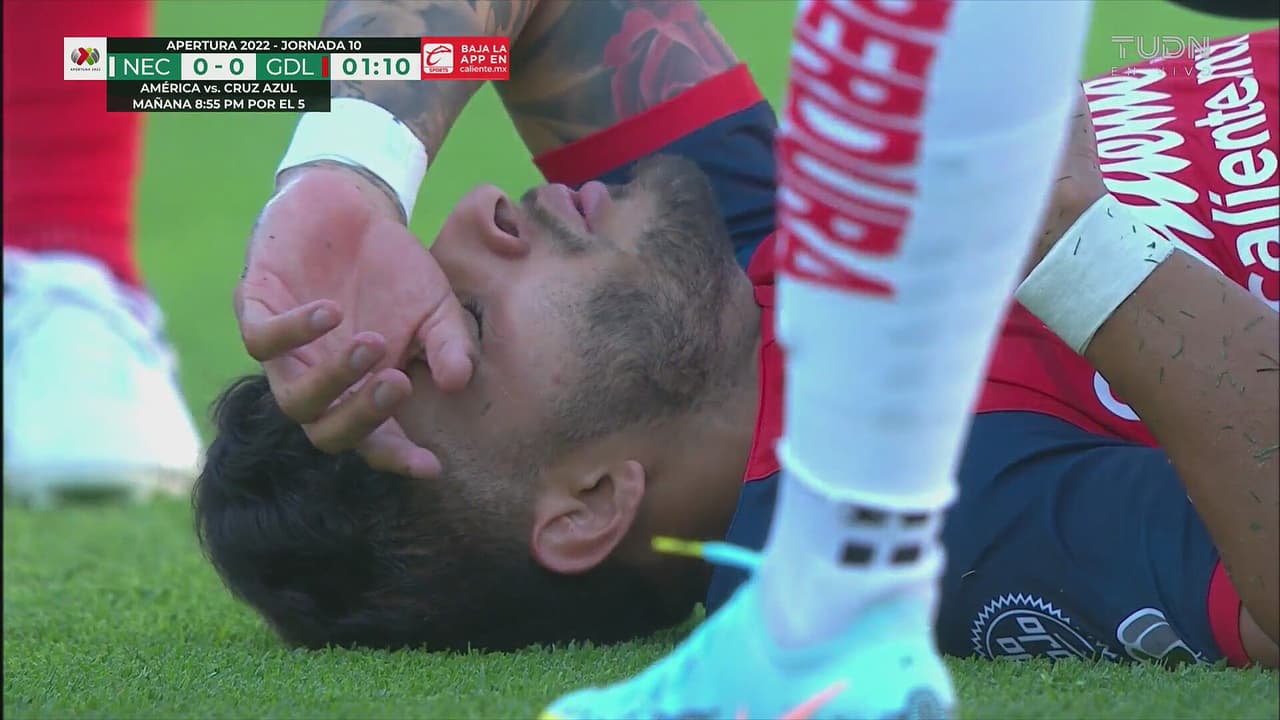 Esquivel llega muy fuerte sobre el jugador de Chivas, pero el árbitro solo le mostró la amarilla al 1’.