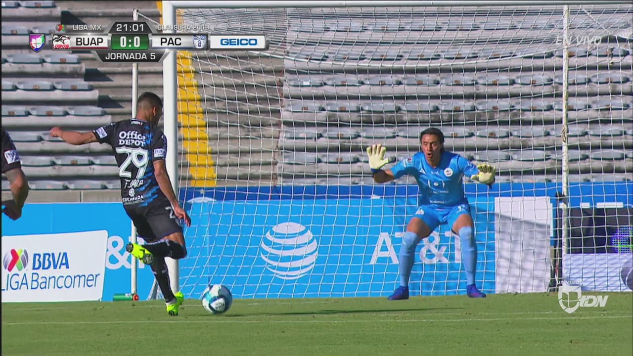 Mano a mano entre 'El Jinete' y el arquero que reaccionó extraordinariamente para salvar su portería.