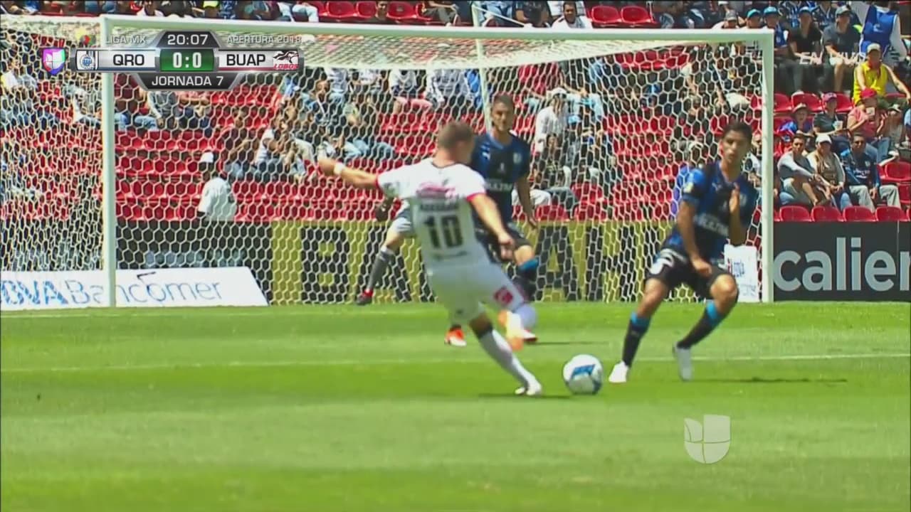 Con un tiro de larga distancia, el jugador español buscaba abrir el marcador en la Corregidora, pero se fue por encima del travesaño.