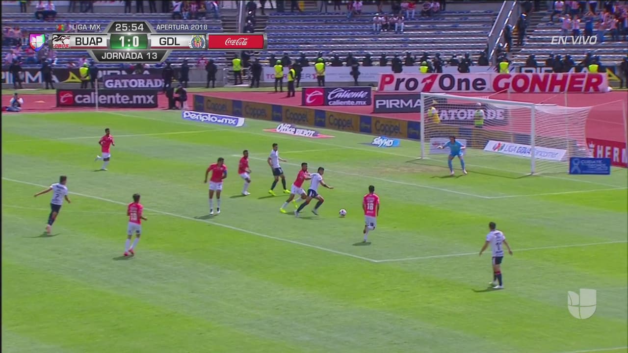 Alan Pulido lo volvió a intentar ante el arco de la BUAP, pero se le niega el gol; luego los locales se salvan de un autogol.