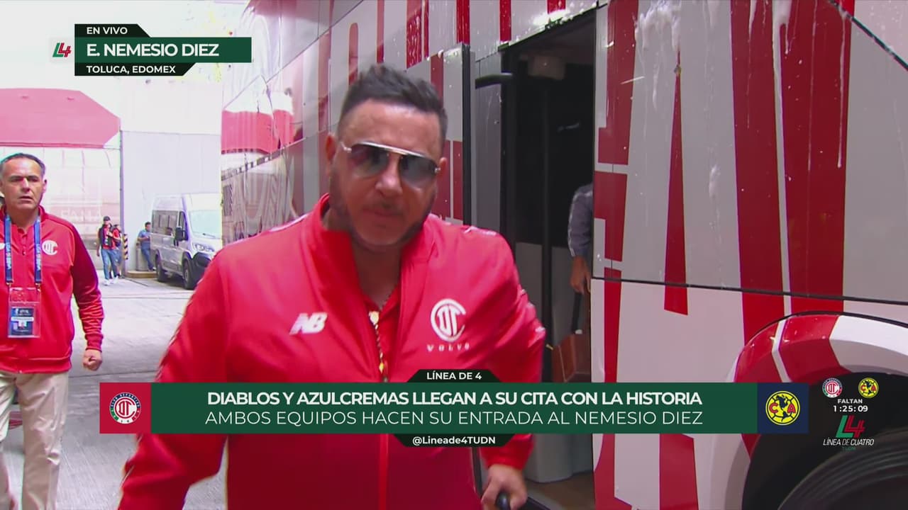 En medio de una multitud de aficionados, los futbolistas del Toluca hacen su arribo al Nemesio Diez.