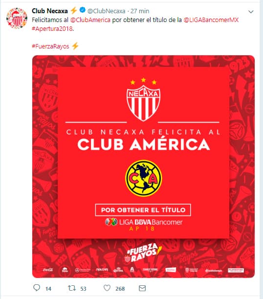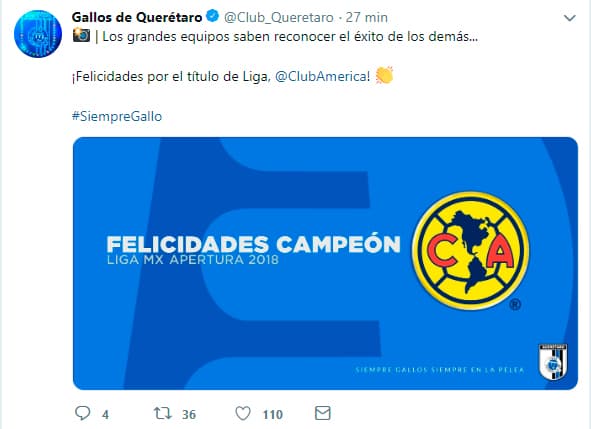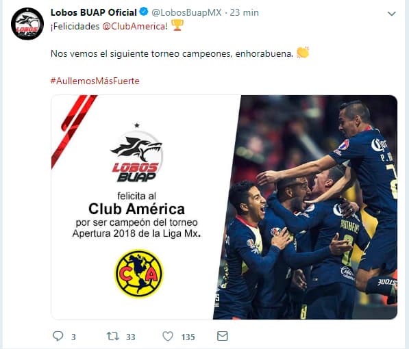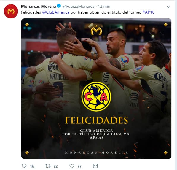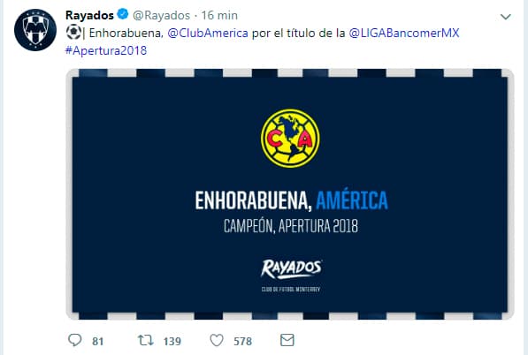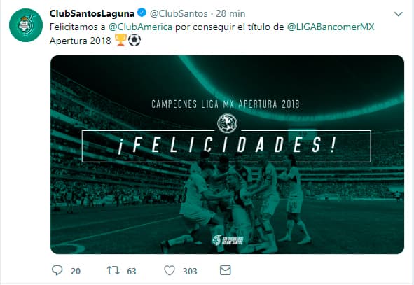Los equipos de la Liga MX que felicitaron al América por el título del Apertura 2018