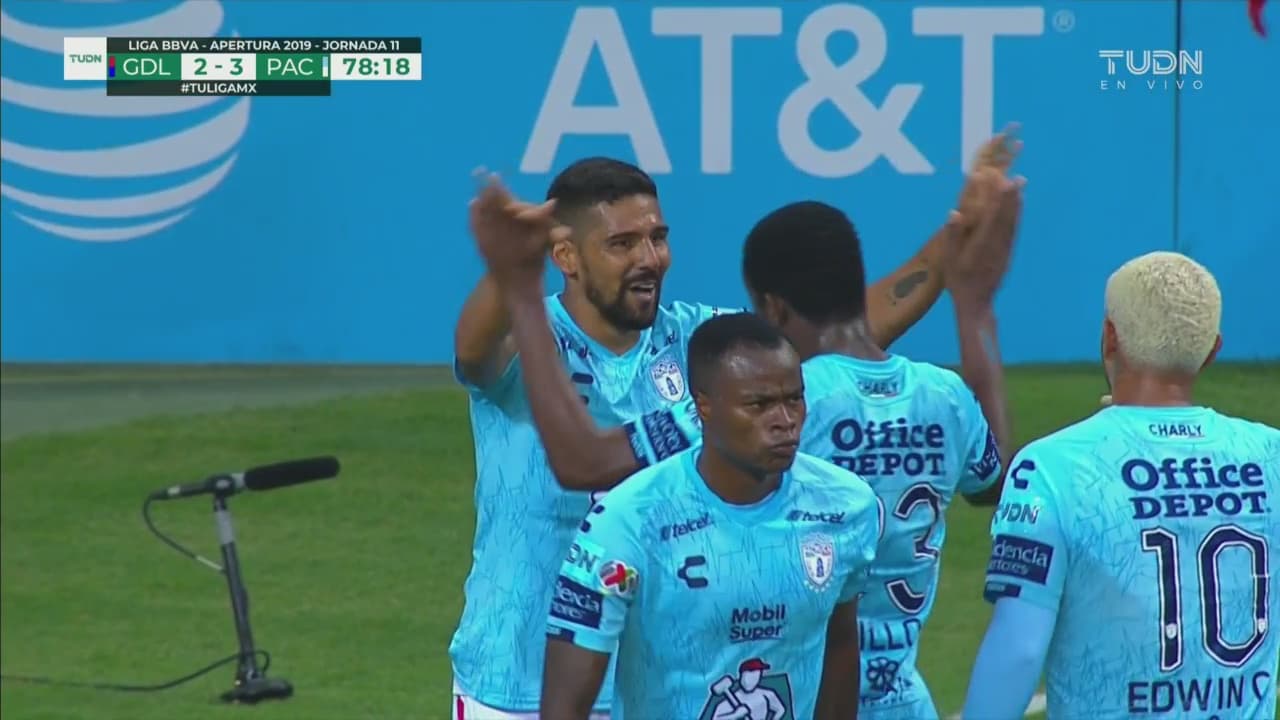 En el tercer gol del Pachuca, Antonio Briseño manda un pase retrasado demasiado comprometido y que aunado a un resbalón de Gilberto Sepúlveda, Franco Jara aprovechó el error para marcar el tercer tanto visitante.