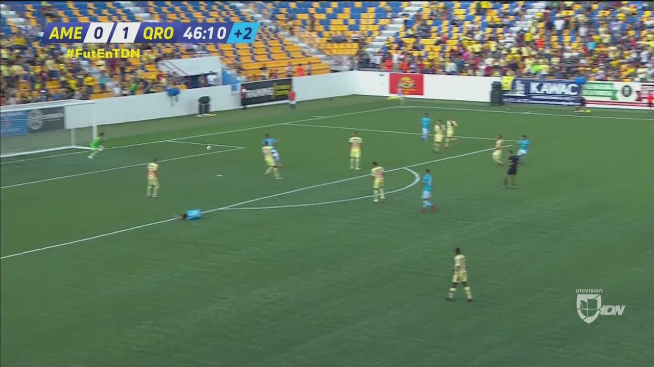 En la última jugada de la fase inicial, el volante del Querétaro mandó un zurdazo con potencia que Óscar Jiménez contuvo en el fondo.