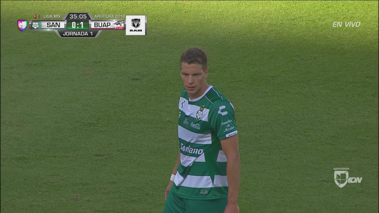 Julio Furch acomoda y patea con parte interna pero el esférico pasa a un costado del arco.