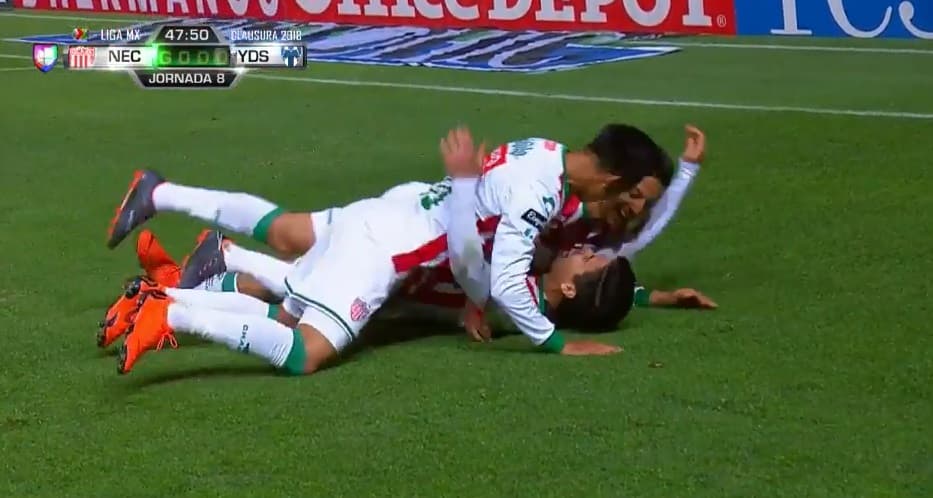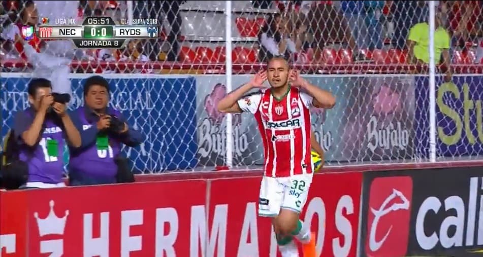 Carlos González marca el 1-0 de Necaxa sobre Monterrey