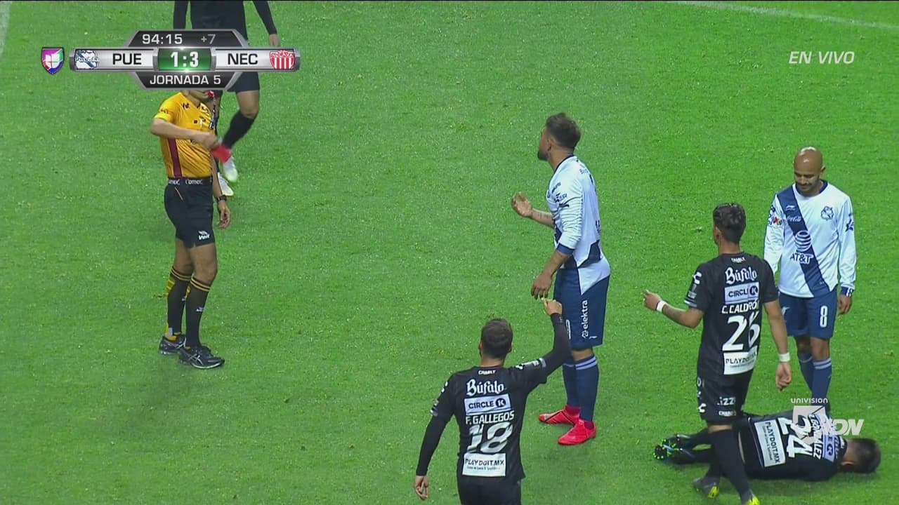 Lucas Cavallini brinca a destiempo e impacta con el codo a un adversario y termina expulsado.