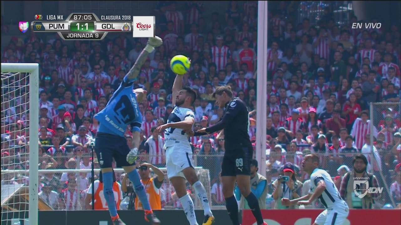 El defensa mexicano brincó con la mano alzada, el balón se estrelló en ella y el árbitro no dudo en marcar el penal.