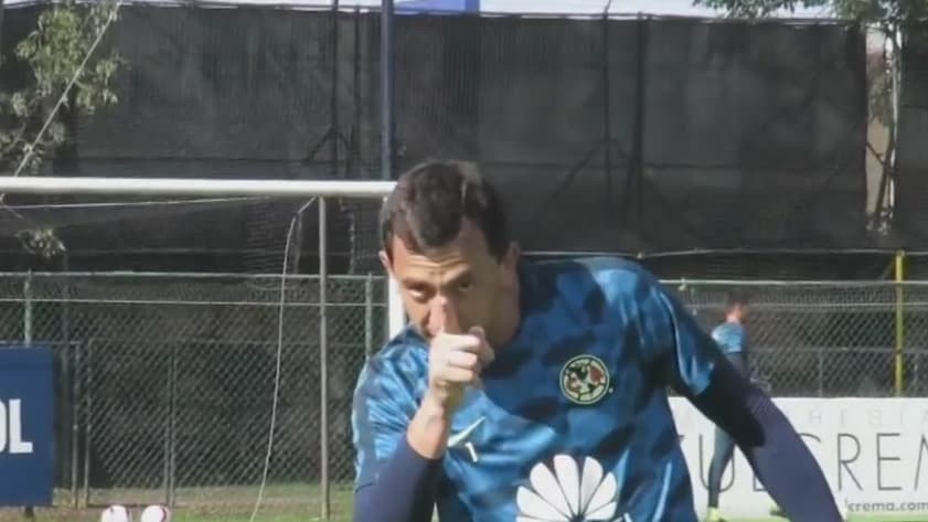 El arquero del América se enfrascó con el mediocampista en una competencia de disparos desde fuera del área. Aunque su especialidad son las manos, ‘Marche’ seguramente sorprendió a más de uno.