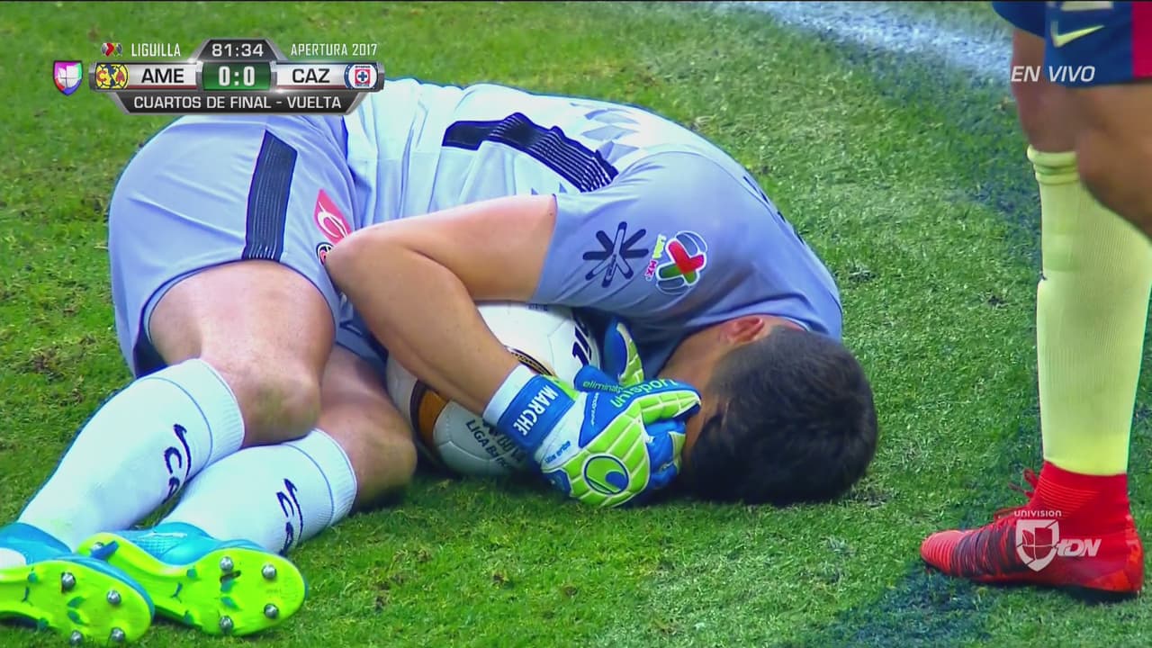 Marchesín, otra vez bien colocado, detiene sobre la línea de gol un cabezazo de Mora